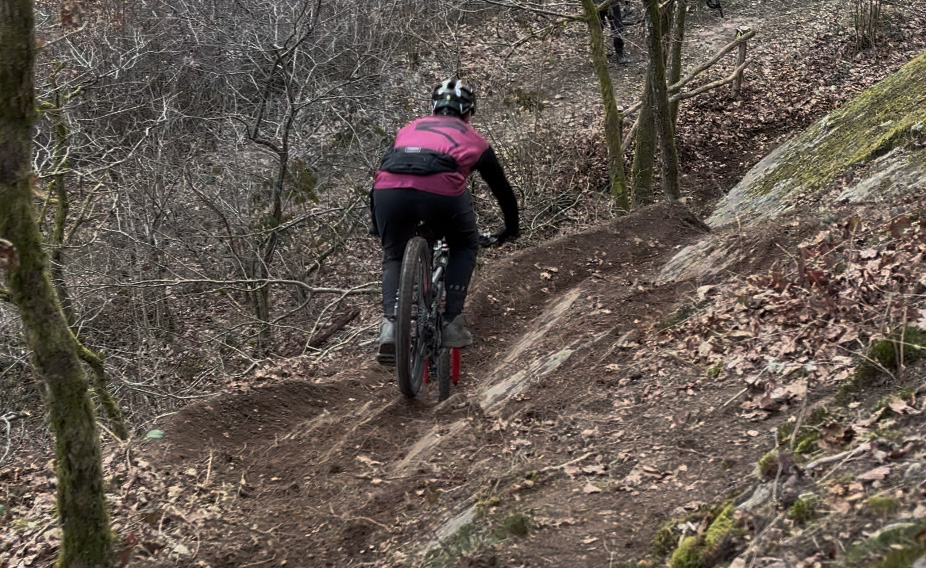 Bienvenue sur la piste "La Leekoll" (prononcez "Lécol", avec l'accent luxembourgeois, s'il vous plaît ! (Lee = Ardoise et Koll = La mine)), un nom qui fait un clin d'œil malicieux au Musée des Ardoisières. Et ça tombe bien, car cette piste est un véritable jeu de construction déjanté ! Entre les dévers qui vous font jouer à "Marche ou crève !" et les rochers qui ajoutent une bonne dose de défi, vous allez être servi ! Ça va secouer, accrochez vos casques ! C'est parti pour une descente complètement déjantée, réservée aux amateurs de sensations fortes !